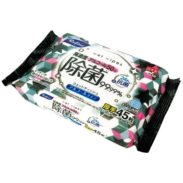 品番:122972 リファイン 高濃度アルコール50%除菌ウェットティッシュ45枚1P
