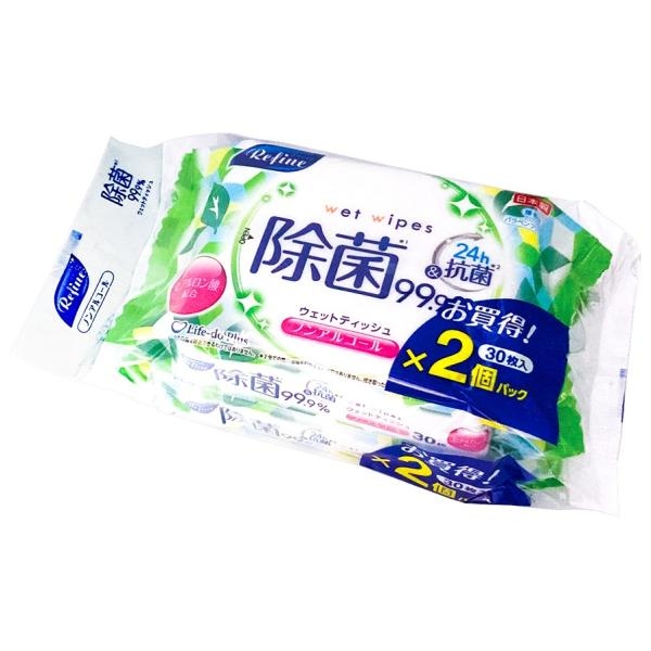 品番:122976 リファイン おでかけウェットティッシュ30枚2P アルコール除菌