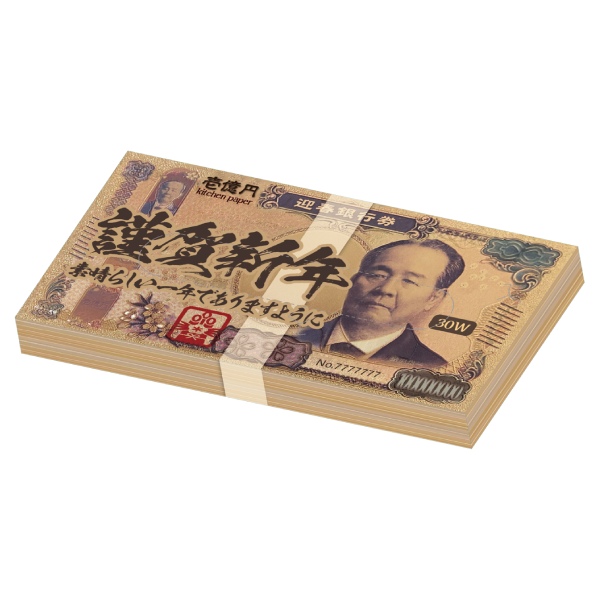 新壱万円札をモチーフにしたパッケージには、謹賀新年とメッセージが書かれているので、新年のご挨拶品としておすすめです。