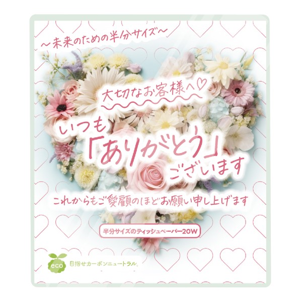 品番:123004 ハンディーありがとうティッシュ20W ハートのブーケ(ポリタイプ)