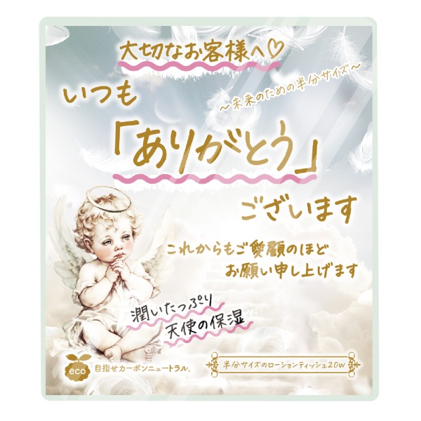 品番:123007 ハンディーありがとうティッシュ20W 天使の保湿(ポリタイプ)