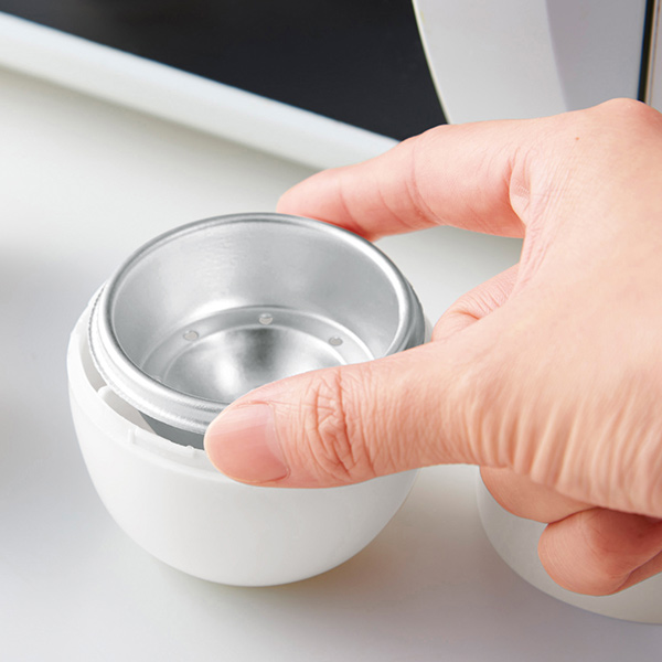 使ってみたくなる、たまごそのもののようなビジュアルのゆでたまごメーカーです。