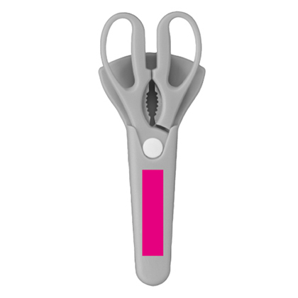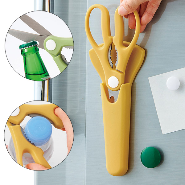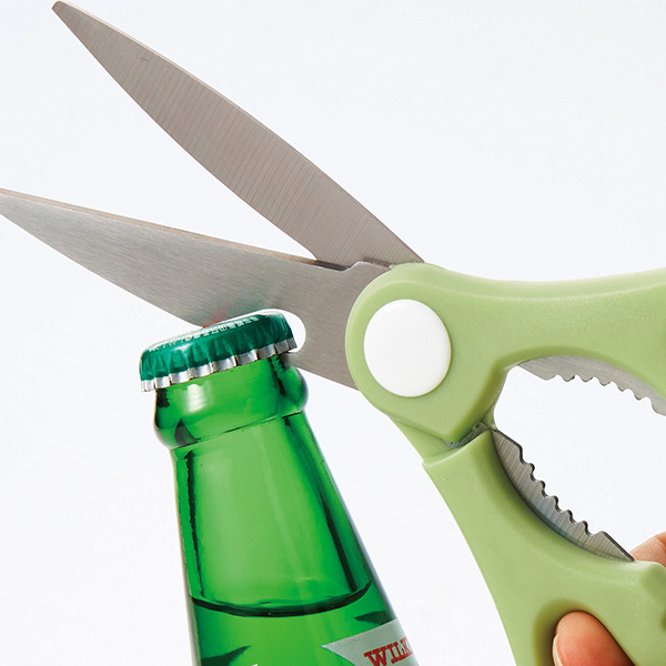 通常のハサミのほか、栓抜き、ペットボトルオープナーの機能も付いているため、一本で様々な役割を持っているアイテムです。