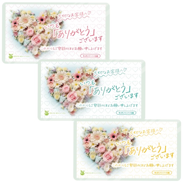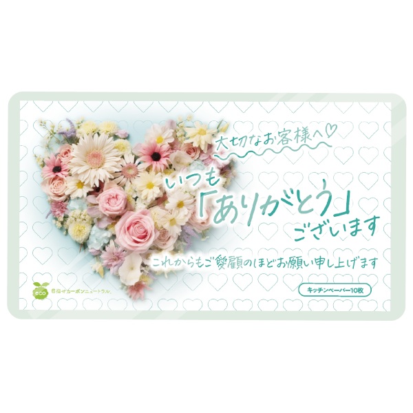 品番:123021 ありがとうキッチンペーパー10枚 ハートのブーケ(ポリタイプ)