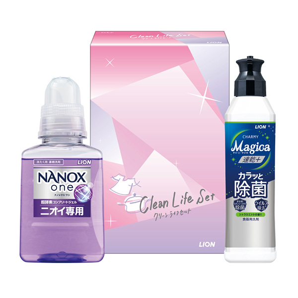 ライオンの洗濯用洗剤&食器用洗剤が入ったギフトセット。