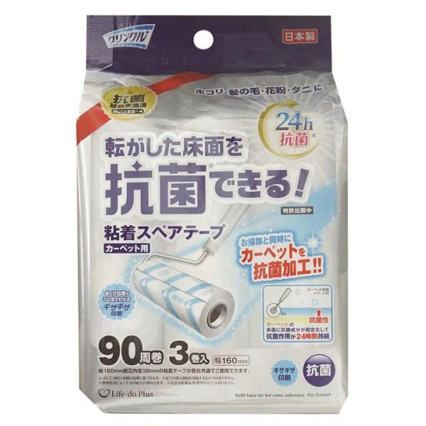 品番:123042 クリンクル 24h抗菌付与粘着スペアテープ(カーペット用)90周3P