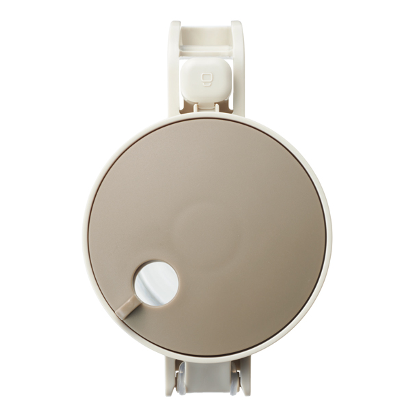 奥に開くプッシュオープン式。フタが奥に開くのは、中身が見やすくなってすくいやすいから。しかもプッシュオープン式なので片手で扱うことができます。