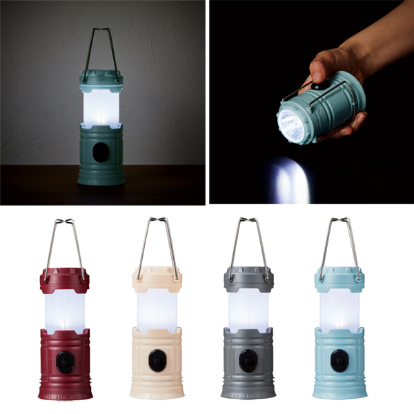 周囲360度を明るく照らすランタンライトと懐中電灯としても使えるハンディライトの2WAYです。