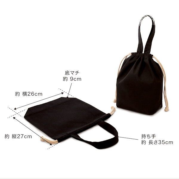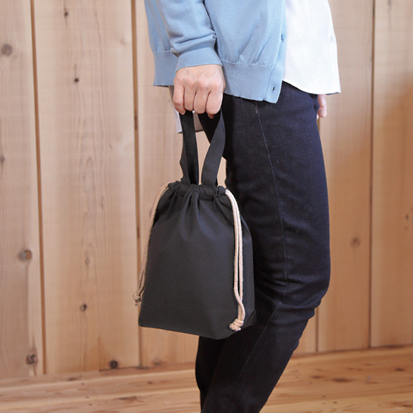 品番:123210 リサイクルコットンポリエコ巾着(黒)