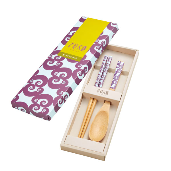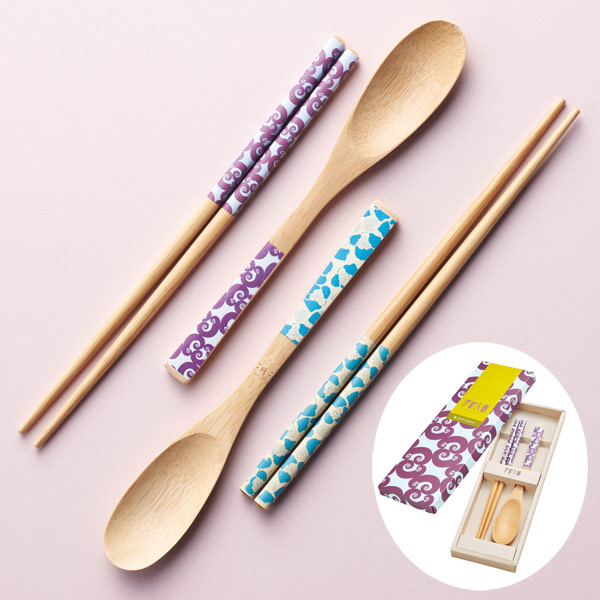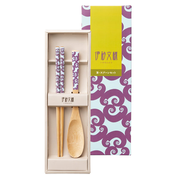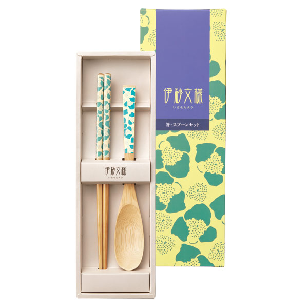 実用性の高い木製の箸とスプーンがセットされ、伊砂文様柄の化粧箱で特別感漂うギフト商品です。