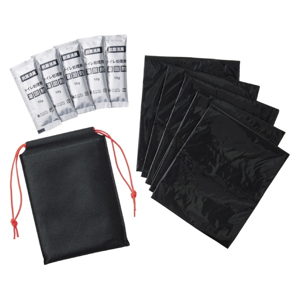 5回分の携帯トイレを1つのポーチにセットしました。