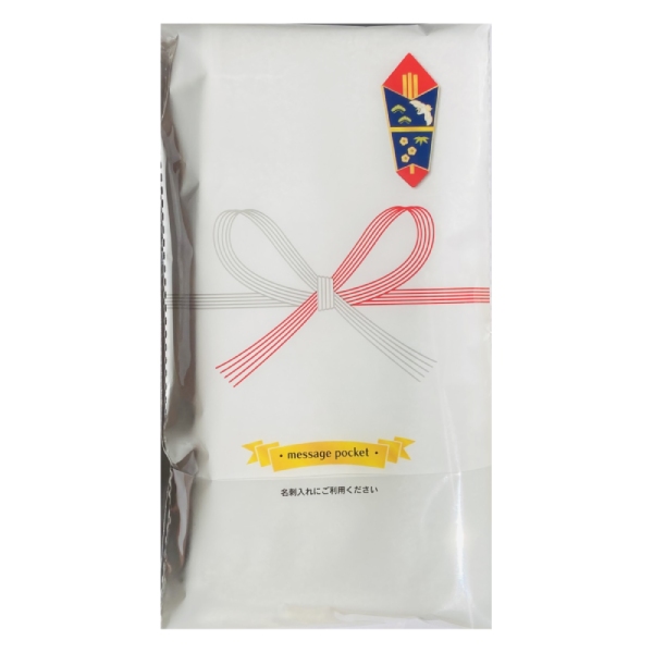 熨斗デザインの袋に、使いやすい白のタオルが入っています。