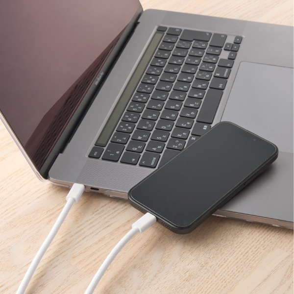 Type-C×Type-Cケーブルがネックストラップになっています。