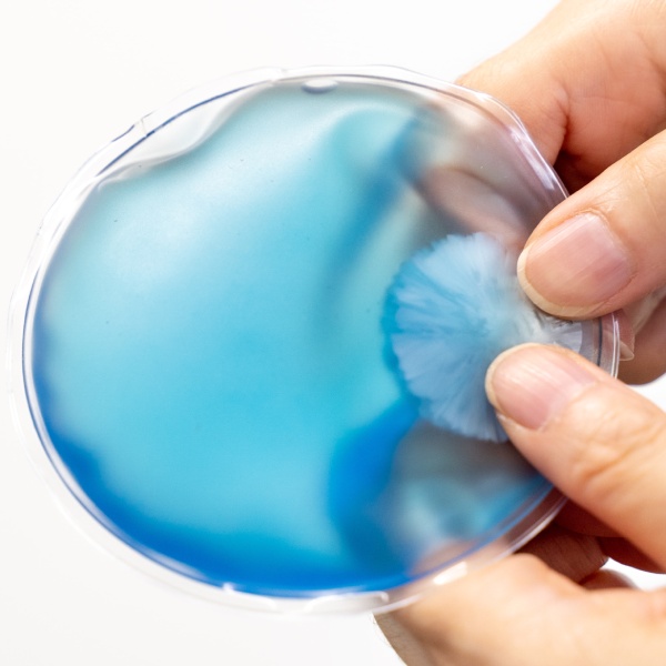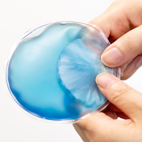 金属プレートを数回押し曲げると液体が結晶化し発熱します