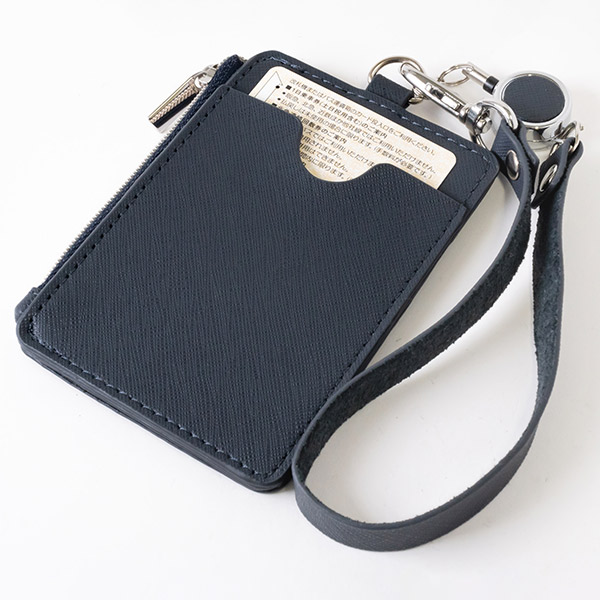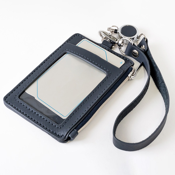 背面にもポケット付きでIDケースとしても使え、リール式ストラップが更に使いやすさ抜群です。