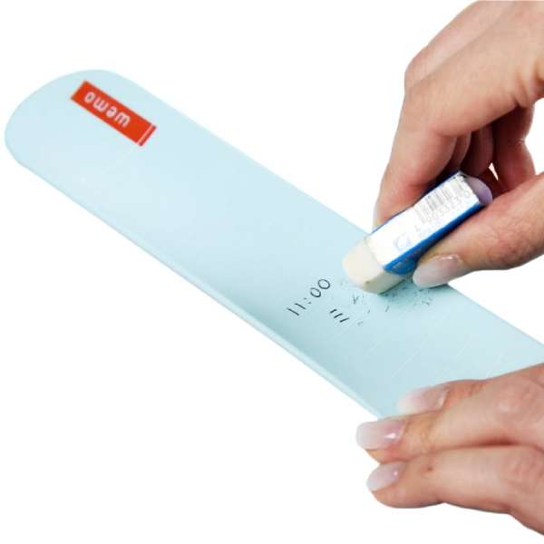 シリコン素材に独自のコーティングを施し、油性ボールペンで書いて、指や消しゴムで消すことが可能。何度でも繰り返し使用できます。