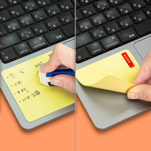 ノートパソコンやデスク周り、手帳などに、簡単に貼って剥がすことができ、繰り返し使えます。