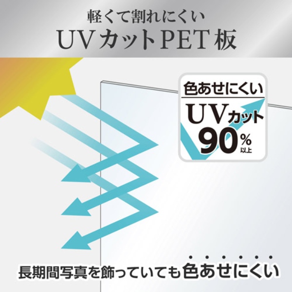 前面板には写真の色あせを軽減するUVカットPET板を使用。