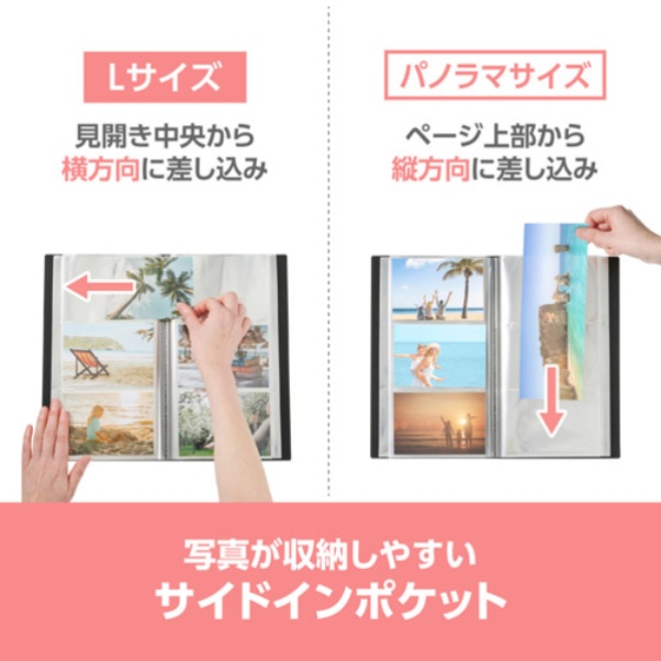 パノラマサイズの写真を100枚縦向きに収納することも可能です。
