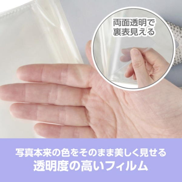 ポケットには高透明度のフィルムを採用しておりますので、写真本来の色をそのまま見ることができます。