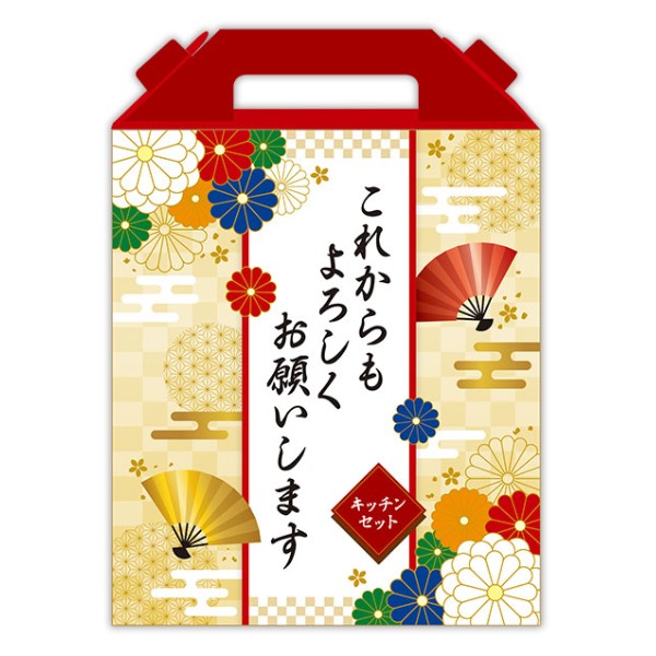 メッセージと和風のデザインが目を引く華やかなギフトボックスです。