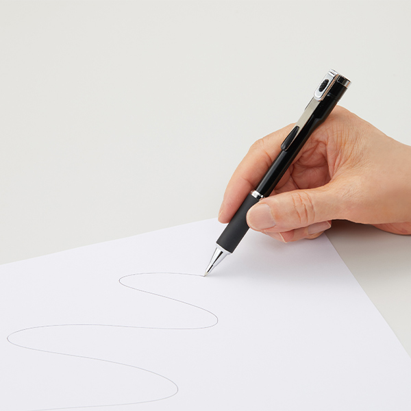また、手にやさしくなじむソフトグリップ(エラストマー)を採用し、握りやすく、長時間の筆記でも快適な使い心地を実現しました。