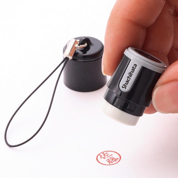 携帯に便利なストラップ付だから、ケータイやネックホルダーにつけていつでも必要なときにサッと取り出してポンっと捺印ができます。