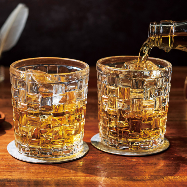 ウイスキーの琥珀色が美しく映えるロックグラスのペアセット。