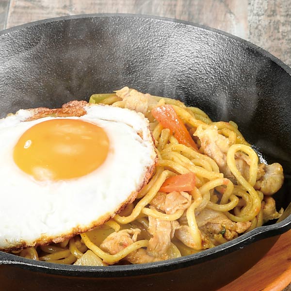 カレー焼きそば調理例(※商品は麺と粉末スープのみになります。お好きな具材を入れてお召し上がりください。)