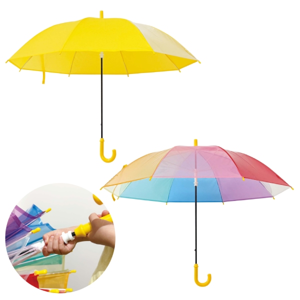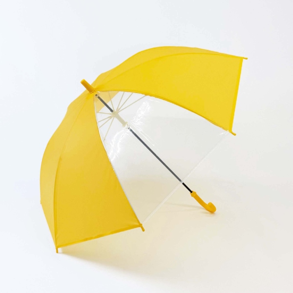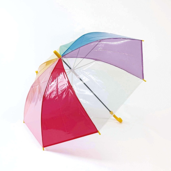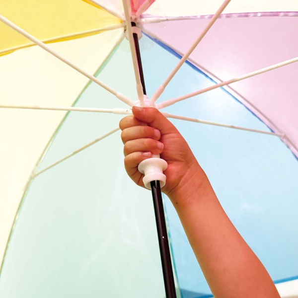 1パネルが透明窓で、傘を差していても視界が確保しやすく、雨の日の通学やお出かけも安心です。(レインボーは全パネル透明窓です。)
