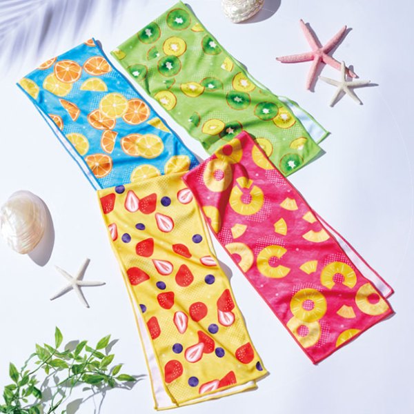 タオルは濡らして振るだけで冷たくなり、暑さ対策として活躍します。