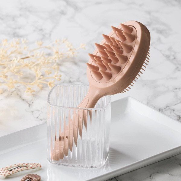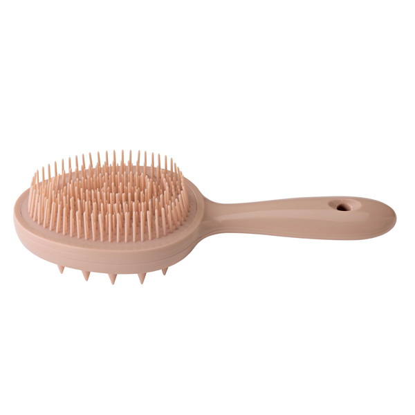 スカルプ面で頭皮を心地よく刺激、デタングル面は絡んだ髪を優しく解きほぐす2wayブラシです。