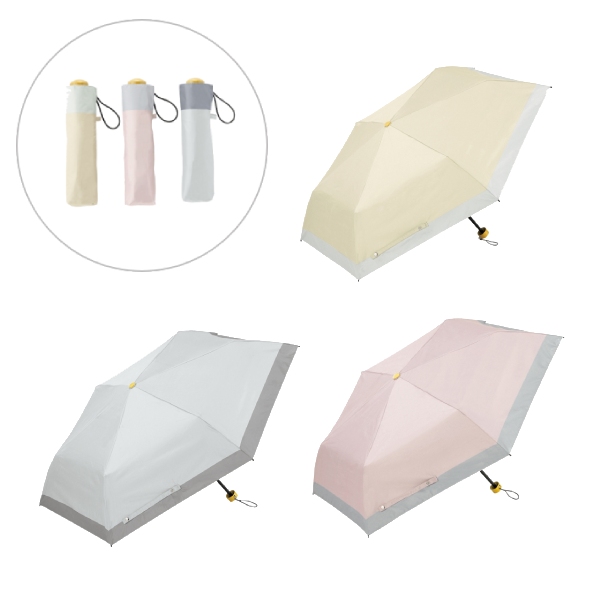 くすみバイカラーで、日差しの強い日の持ち歩きに最適な折りたたみ傘です。