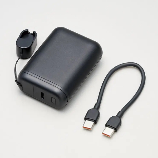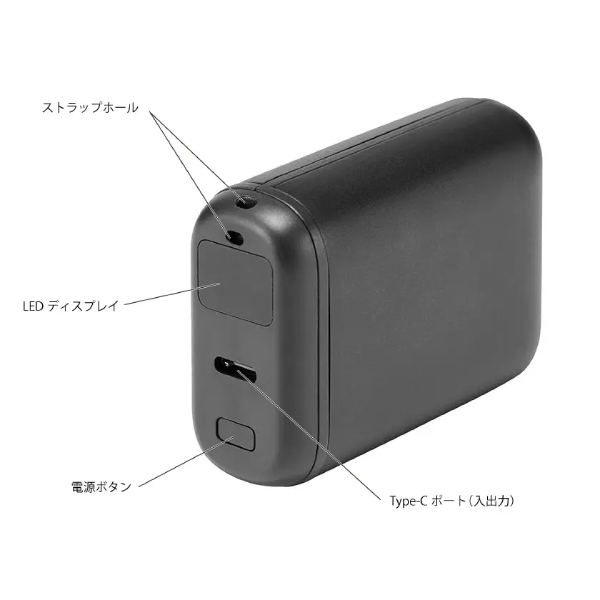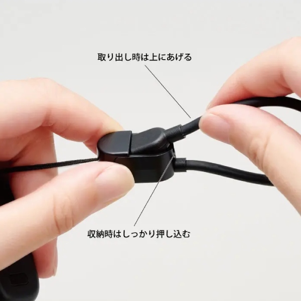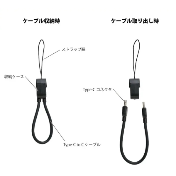 製品を開封した段階では付属のType-C to Cケーブルはストラップとしてケースに収納されています。