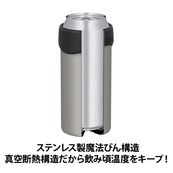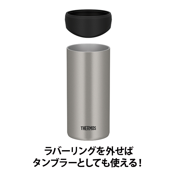 缶飲料のおいしい温度をキープし、ラバーリングを外せばタンブラーに変身!