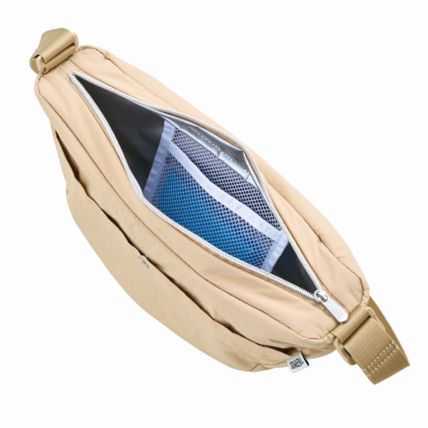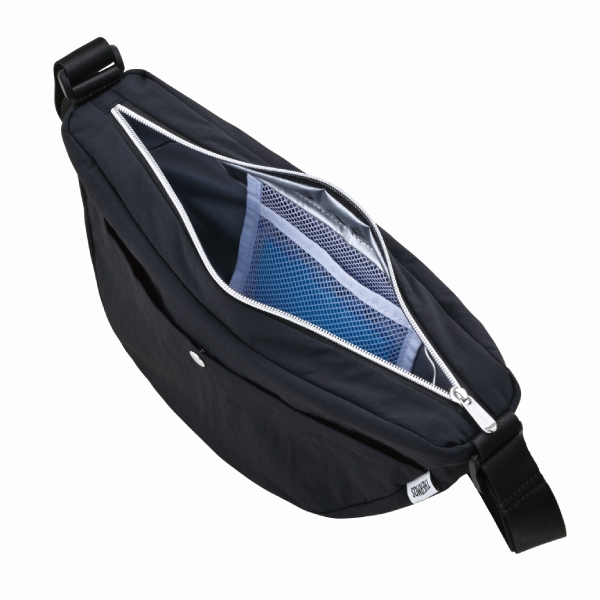 保冷剤が入るメッシュポケットとショルダーの長さを変えられるアジャスター付き。