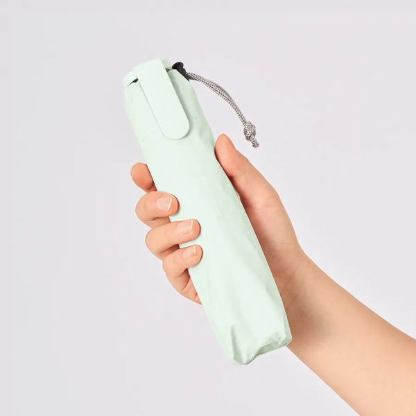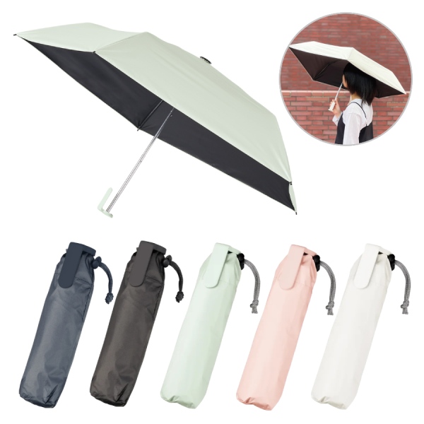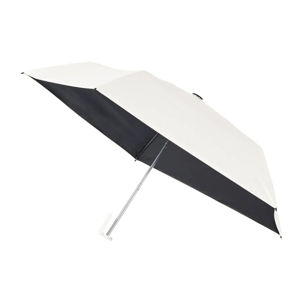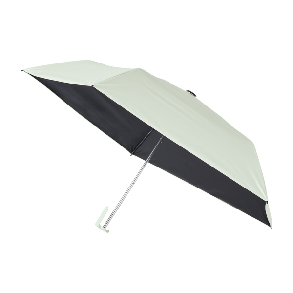 約160gと軽量かつスリムボディで、クリップ形状ハンドルが特徴の遮光折りたたみ傘です。