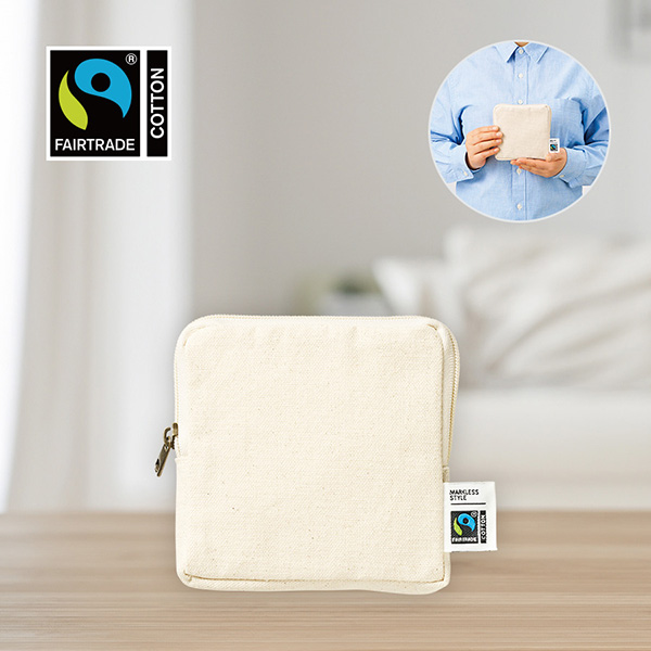 品番:124079 フェアトレードコットンスリムスクエアポーチ(S) ナチュラル