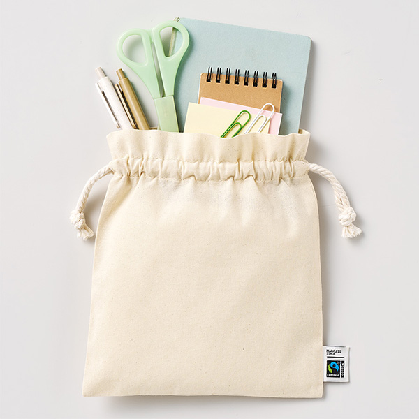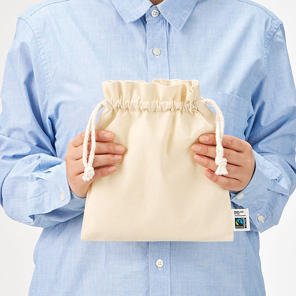 品番:124085 フェアトレードコットンフリル巾着(M) ナチュラル