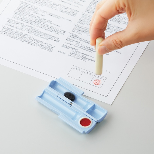 速乾タイプのシヤチハタ朱肉付きで、別途朱肉を持ち運ぶ必要がなく、外出先や急な書類対応でもスムーズに押印できます。