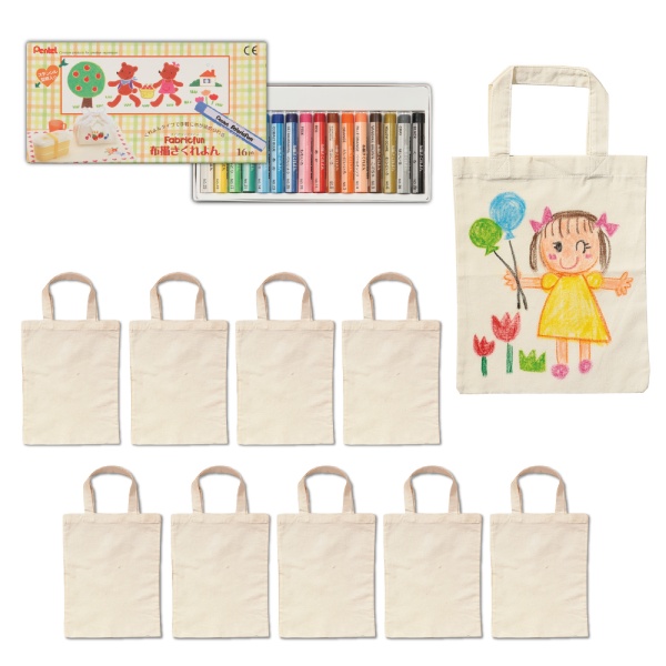 バッグ×10、ぺんてる布描くれよん(16色)×1
