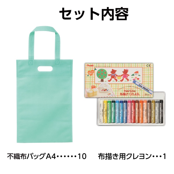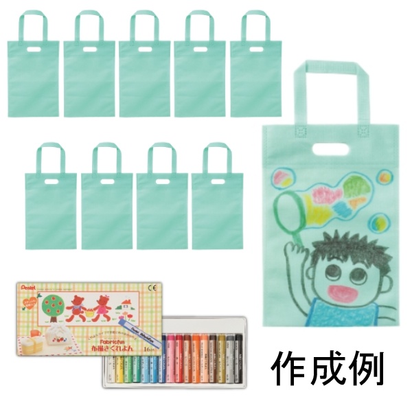 不織布バッグ×10、ぺんてる布描くれよん(16色)×1