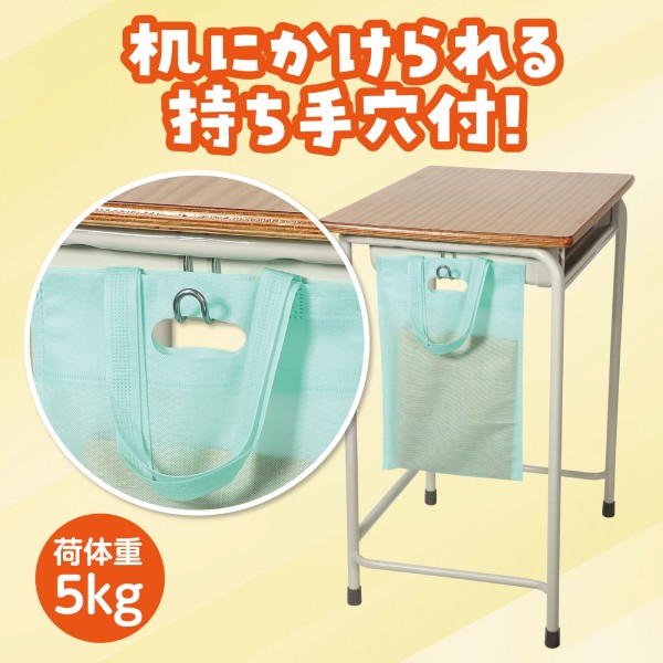 教室や会場でも清潔に使えるよう、持ち手は机に掛けても床につかない窓あき仕様です。