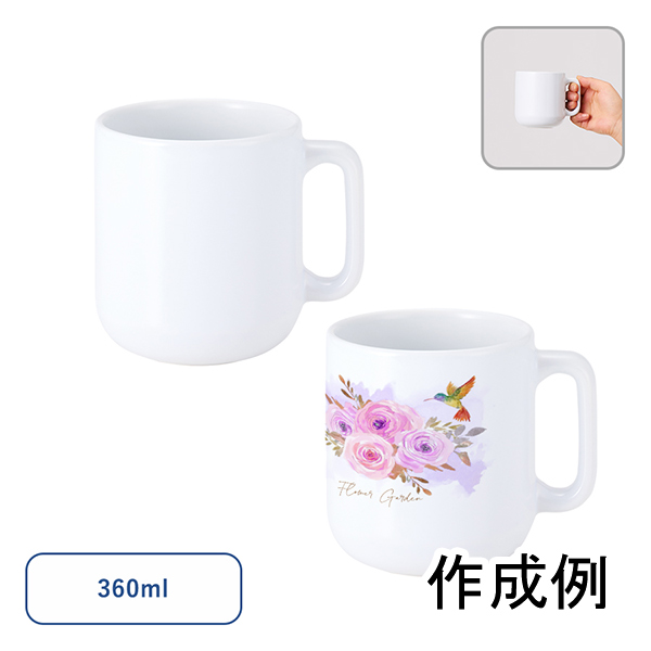 シンプルで真っ白なボディは名入れがよく映えるため、オリジナルグッズ製作向けにおすすめです。