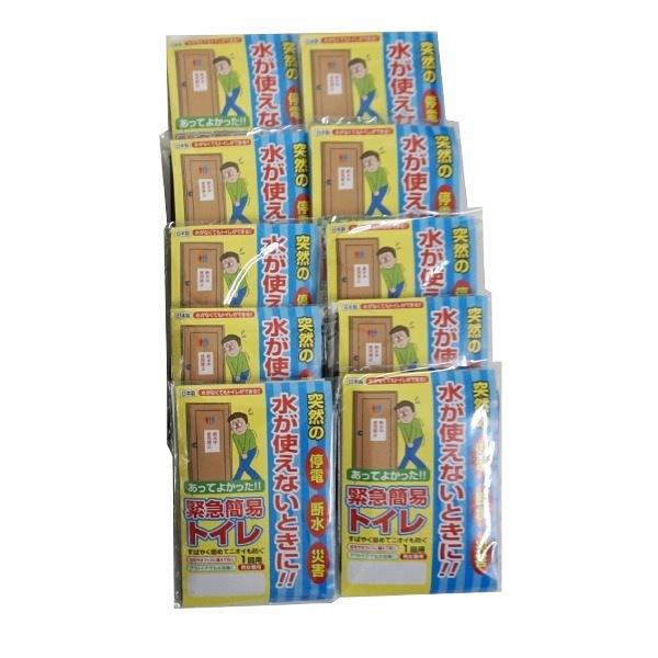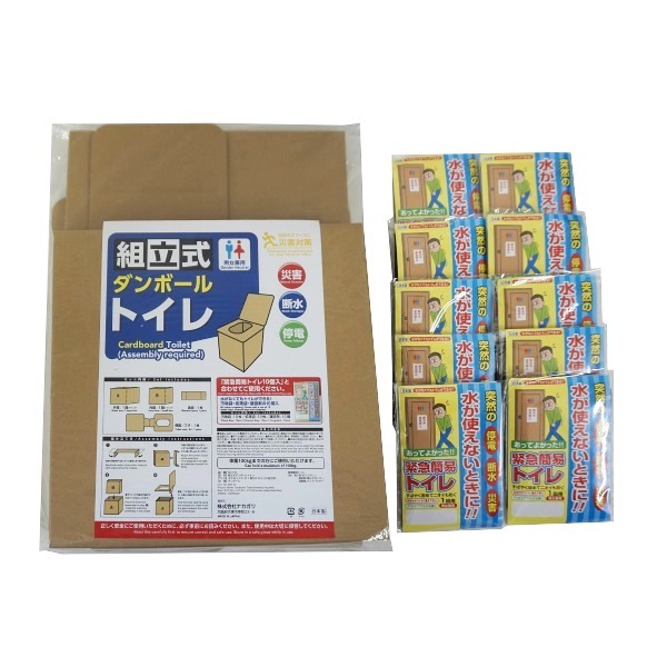 10回分セット付組立式ダンボールトイレ、緊急簡易トイレ10回セット(汚物袋、処理袋、凝固剤)
