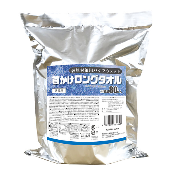 気化熱の作用で肌を冷却し、ひんやり感が持続する「首かけロングタオル」詰め替え用セット。