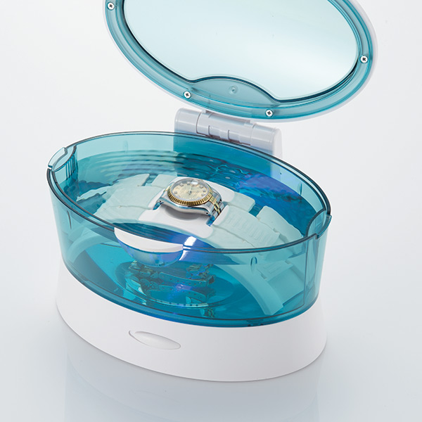 腕時計の本体やネックレスのペンダントトップを水から守りながら洗浄出来る便利な時計ホルダー付き。