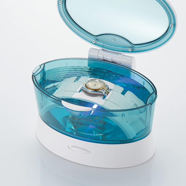 腕時計の本体やネックレスのペンダントトップを水から守りながら洗浄出来る便利な時計ホルダー付き。