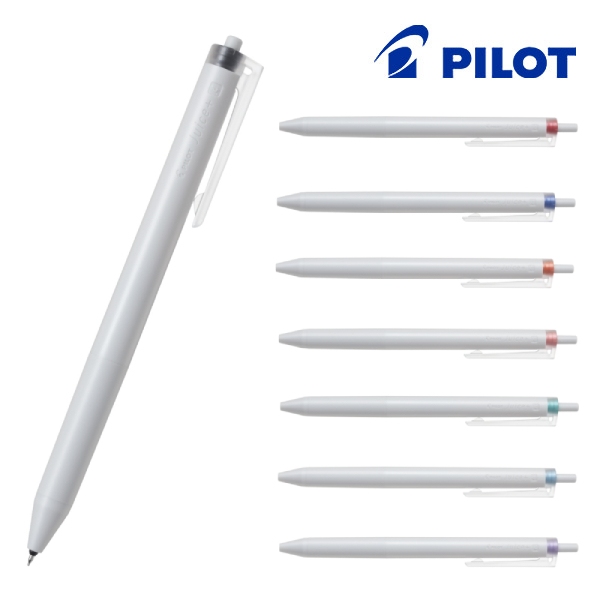 シンプルな白を基調としたデザインに、透明感のあるフロストガラス調クリップやインキ色をさりげなく示すノック部分を採用し、ペンケースや日常のシーンにも自然になじむ仕様です。