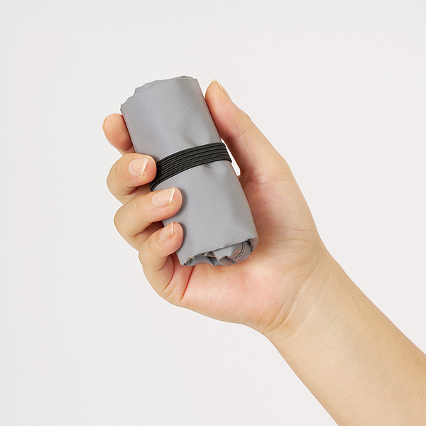 持ち手の先にゴムがついており、くるっとまとめることができるため持ち歩きにも便利。